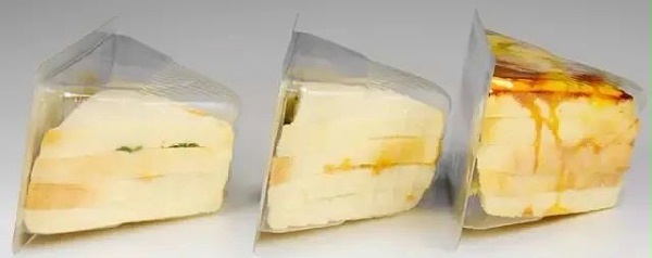 烘烤食品包括糕点、蛋糕、饼干、面包等,主成分为淀粉。由细菌霉菌等引起的腐变、脂肪氧化引起的酸败变质、淀粉分子结构老化硬变等造成食品变质。应用于这类食品气调保鲜包装的气体由CO2及N2组成。不含奶油的蛋糕在常温下保鲜20—30天,月饼、布丁蛋糕采用高阻隔性复合膜常温下保鲜期可达60—90天。